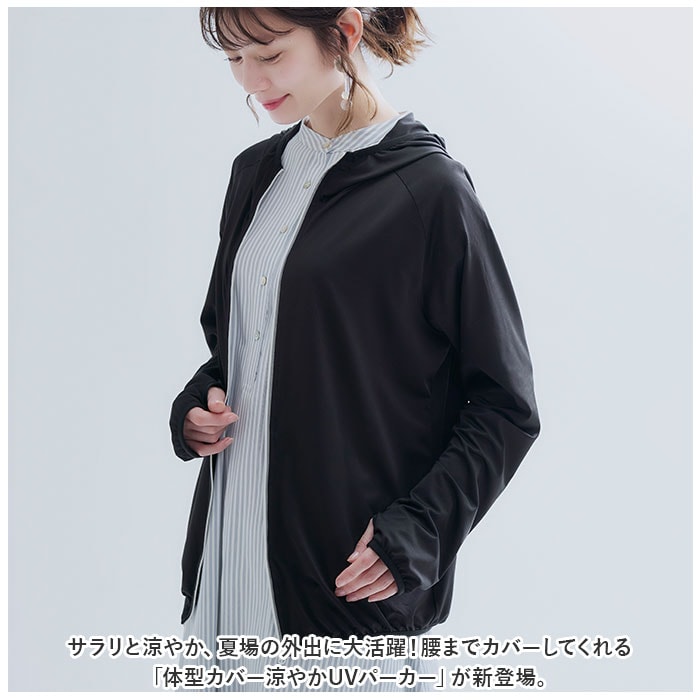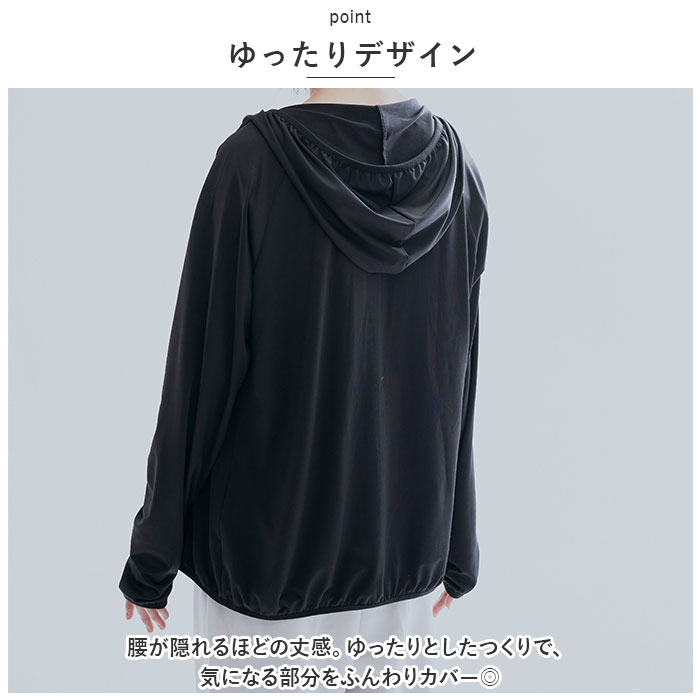 体型カバー涼やかUVパーカー【ブラック】【L~LLサイズ】