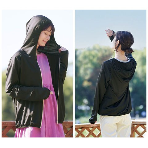 | 商品説明 | サラリと涼やか、夏場の外出に大活躍!腰までカバーしてくれる「体型カバー涼やかUVパーカー」が新登場。【ゆったりデザイン】腰が隠れるほどの丈感。ゆったりとしたつくりで、気になる部分をふんわりカバー◎【紫外線対策に!】UVカット率約99%で気になる紫外線からお肌をガード!首元までカバーできるフードや、手の甲まで覆える親指ホール付き。【接触冷感素材】薄手の接触冷感生地を使用しており、触れるとひんやり♪汗ばむ季節も快適!【吸水速乾性も】汗を素早く吸収し、乾きが早いのも嬉しいポイント。【動きやすさばっちり】伸縮性にも優れており、ウォーキングなど体を動かすシーンでも活躍。【着脱カンタン】脱ぎ着しやすいフロントファスナータイプ。トップスの上からもサッと羽織れて便利。【夜道でも安心】フロントファスナー部分にリフレクター付きで、夜間の外出も安心・安全◎【お手入れラクチン】洗濯ネットに入れて、自宅で洗濯機洗いOK。(※洗濯機の弱モードまたは手洗いモードをご使用ください。)【持ち運びに便利】くるくるっと丸めてコンパクトに収納できる!バッグの中でもかさばらないのが嬉しい♪ |