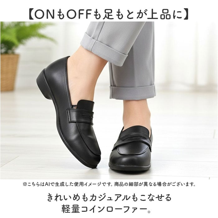 商品説明【ONもOFFも足もとが上品に】きれいめもカジュアルもこなせる軽量コインローファー。【どんなコーデにも合う万能靴】通勤のきれいめスタイルから休日のカジュアルまで、これ一足でサマになる◎【長く歩いても疲れにくい設計】屈曲性に優れた軽量PUソール採用で、しなやかに足に追従し、一日中快適な履き心地!【すっきりシルエットで上品な印象に】すっきりとしたシルエットが、足もとをエレガントに見せてくれる。【高反発クッションの履き心地】中敷に高反発ウレタンを2枚重ねて使用しているから、足への負担がぐっと軽くなる♪【抗菌中敷で清潔をキープ】抗菌加工を施した中敷を採用しているから、オフィスでの長時間使用でも安心〇
