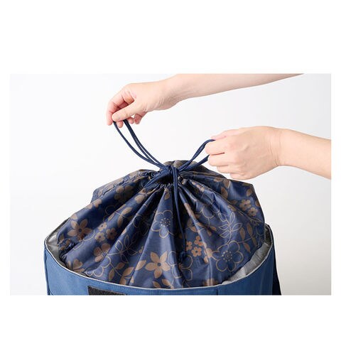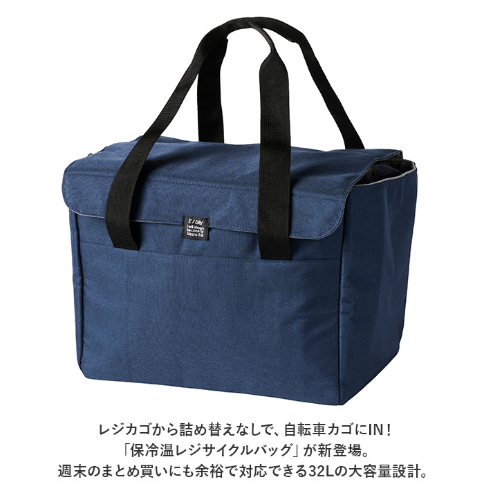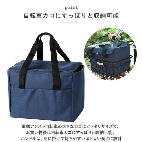 商品説明レジカゴから詰め替えなしで、自転車カゴにIN!「保冷温レジサイクルバッグ」が新登場。レジカゴにサッと広げれば、巾着部分がカゴにフィット!バッグを取り出すだけで、袋入れの手間が軽減。電動アシスト自転車の大きなカゴにピッタリサイズで、お買い物後は自転車カゴにすっぽりと収納可能。口がキュッと絞れて中身が飛び出さない巾着仕様+水濡れやホコリを防ぐ面ファスナーフラップ付きで安心。バッグの内側には保冷保温効果に優れたアルミ蒸着シートを採用し、生鮮食品や冷凍食品の持ち歩きもOK!汚れもサッと拭き取れるのが嬉しいポイント。週末のまとめ買いにも余裕で対応できる32Lの大容量設計。まるごとお野菜はもちろん、2Lのペットボトルなら6本入るサイズ感。バッグの背面にはスマホやお財布の収納に便利な仕切りオープンポケットが2つ。ハンドルは、肩に掛けて持ちやすいほどよい長さに設計し、荷物が重くなったときでも楽ちん。しっかり自立して形が崩れないボックスフォルムだから、物の出し入れがスムーズ。生地の表面は水滴や汚れに強いはっ水加工済み。普段のお買い物だけでなく、レジャーやキャンプでの食材の持ち運びにも大活躍!