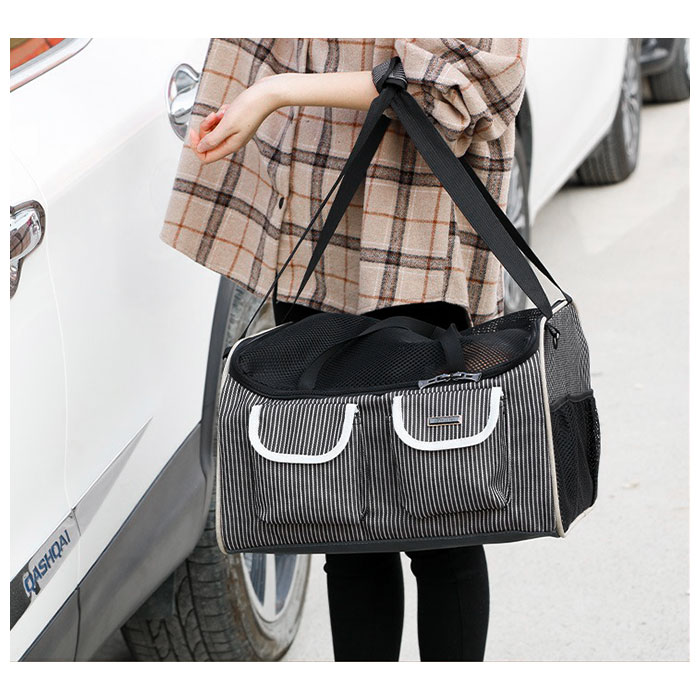 | サイズ | 【使用時のサイズ】 [縦]約27cm/[横(底部)]約37cm/[マチ]約34cm [持ち手]約77cm/[ショルダー]約78cm~約153cm(調節可能) [リードの長さ]約24cm~約40cm(調節可能) [ゴムバンドの長さ]約50cm(伸縮性あり) 【折りたたみ時のサイズ】 [縦]約39cm/[横]約40cm/[厚み]約5cm ※サイズは当店計測の実寸サイズです。実際の商品ならびにメーカー表記サイズとは多少の誤差が生じる場合がございます。あらかじめご了承ください。 |