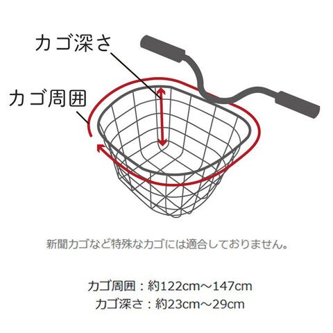 | サイズ | ・適合カゴサイズ [上部外周]約122cm~約140cm/[深さ]約23cm~約29cm ・実寸サイズ [縦]約47cm/[横(フタ上部)]約41cm/[奥行]約35cm ※サイズは当店平置き実寸サイズです。実際の商品とは多少の誤差が生じる場合がございます。あらかじめご了承ください。 |