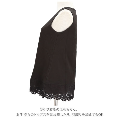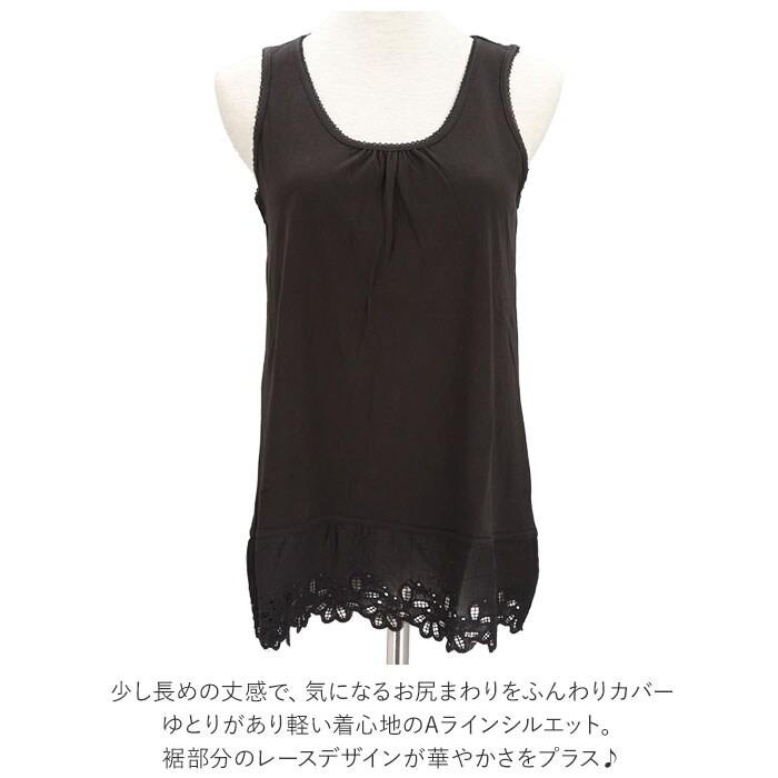 dgy デコカンパニー コットン100% 裾レースタンクトップ【ブラック】【LLサイズ】