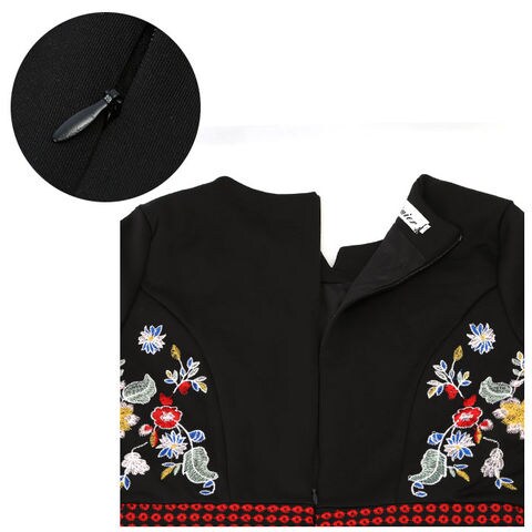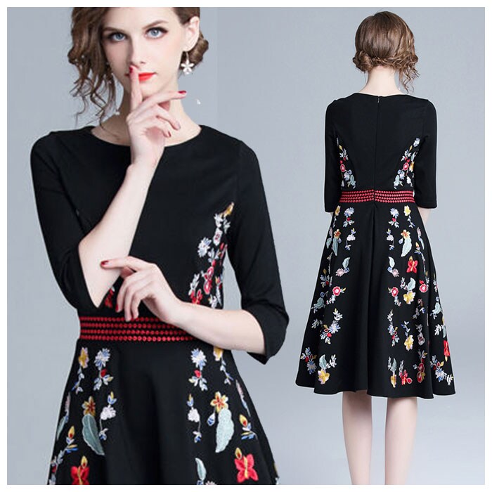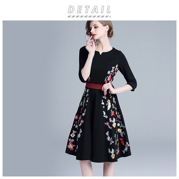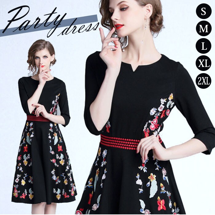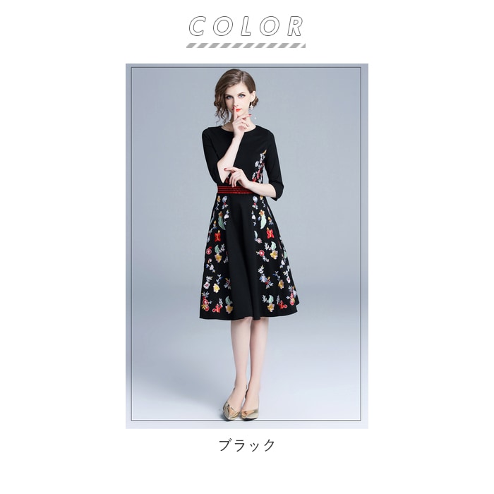 | 商品説明 | 黒地に鮮やかな花柄刺繍が際立つ、パーティードレスが登場!しっかりとした生地感で裏地付きなので、透けることなく安心して着用できる。ウエスト部分が切り替えデザインになっているので、細見え効果も◎膝丈でフレアデザインになっているので、上品な印象を与えてくれる。お呼ばれドレスとしてはもちろん、お出かけにもぴったり。 |
