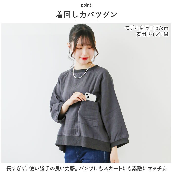 | 商品説明 | 大人のリラックスコーデにぴったり。柔らかなコットンツイル素材の「dgy 裾リブワイドブラウス」が新登場。【dgyとは】肌触りの良さ、着やすさを追求したオリジナル素材で、ナチュラル&カジュアルな大人のデイリーウェアを提案。自然な自分らしい心地よさを実感して頂けるブランド♪【着心地軽やか】ふっくらとした質感で、肌触りの優しいコットンツイル素材。左胸のポケットや襟ぐり、袖、裾はリブ仕様。【ワイドシルエット】身幅に余裕を持たせたワイドなデザイン。ボディラインを拾いにくく、気になる部分もふんわりカバーできるのが嬉しいポイント。【着回し力バツグン】長すぎず、使い勝手の良い丈感。パンツにもスカートにも素敵にマッチ☆ |