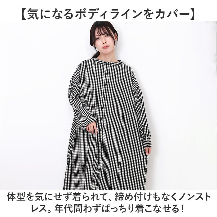 | 商品説明 | ナチュラルな大人カジュアル☆程よく肉厚で着心地も抜群な「2WAY チェックワンピース」。【これ1枚でおしゃれスタイルが完成】存在感のある大きなチェック柄に、たっぷり余裕をもたせたフォルム。1枚でサマになる◎【お好みに合わせて着方をチェンジ】どちらを前にしても着られる2WAY☆その日の気分やコーデに合わせてチョイスOK。【異なる表情で楽しみ方も2倍】襟のないノーカラー。ボタン付きと、装飾のないシンプルデザインの2面。(※)予備ボタンが1つ付属しております。【気になるボディラインをカバー】体型を気にせず着られて、締め付けもなくノンストレス。年代問わずばっちり着こなせる!【大人感漂うエアリーなシルエット】裾にかけて広がるAライン。歩くたびにふわりと揺れて、こなれた雰囲気に。【心地よい肌触りのコットンビエラ】柔らかな綿100%素材のビエラ織り生地。フランネルのように、しっとり暖かい仕上がり♪【小物を入れておけるポケット】左右にポケットを配置。スマホや薄手のハンカチなどをIN。【手洗いできてお手入れラクラク】クリーニング不要、自宅で手洗いOK。いつも清潔をキープできるのが嬉しい☆【サラッと羽織ったりアレンジも】ボタンを全部開けて、羽織りとしても重宝。落ち着きのあるチェック柄をラインナップ。 |