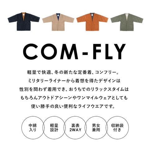 | 商品説明 | 【軽量で機能的なパッカブルはんてん】色んなシーンで活躍◎快適な着心地で、持ち運びにも便利な「DAN-TENコンフリーL」。【いつでもおしゃれに防寒対策】ミリタリーライナーをヒントに、作られたデザイン。中綿入りで、サッと羽織れば手軽に防寒◎【携帯しやすいパッカブルタイプ】折りたたんで、付属の巾着にすっきり収納。軽やかで持ち運び時の負担を軽減。【リバーシブル&ユニセックス仕様】コーデや気分に合わせて、両面使い分けOK。性別や年代問わず着用できるシンプルデザイン。【ボタン1つで着脱がカンタン】フロントには内側で留められるボタンが1つ。シルエットを崩さずキープ!予備ボタンが付属。【手元の動きを妨げずノンストレス】袖口はサクッと折り返すことが可能。手元を動かしやすく、家事や作業も捗る仕様◎【小物が入る便利なポケット】左右にポケットを配置。スマホや薄手のハンカチなどをIN。【巾着の紛失を防げるポケットループ】片側ポケット内に、巾着紐をくくりつけられるループを装備。着用時も失くさず持ち歩ける◎【丸洗いできてお手入れラクラク】汚れなどが気になったら、ネットを使用して洗濯機洗いOK。いつも清潔をキープ。(※1)洗濯機の弱or手洗いモードをご使用ください。【寒い季節を乗り切る心強い味方】室内やワンマイルウェア、アウトドアなどでも!リサイクル生地使用&電気不要のエコアイテム☆(※2)中わたポリエステルの原料に、リサイクル材料を90%以上使用しております。【カラーごとに異なる質感が魅力】カラーによって違いを出した、キルティングデザイン。着こなしやすいカラーをラインナップ。 |