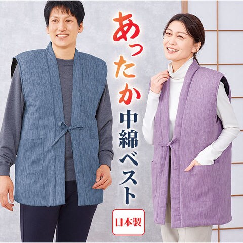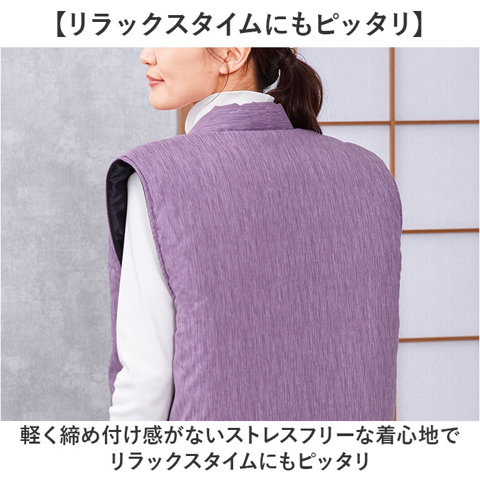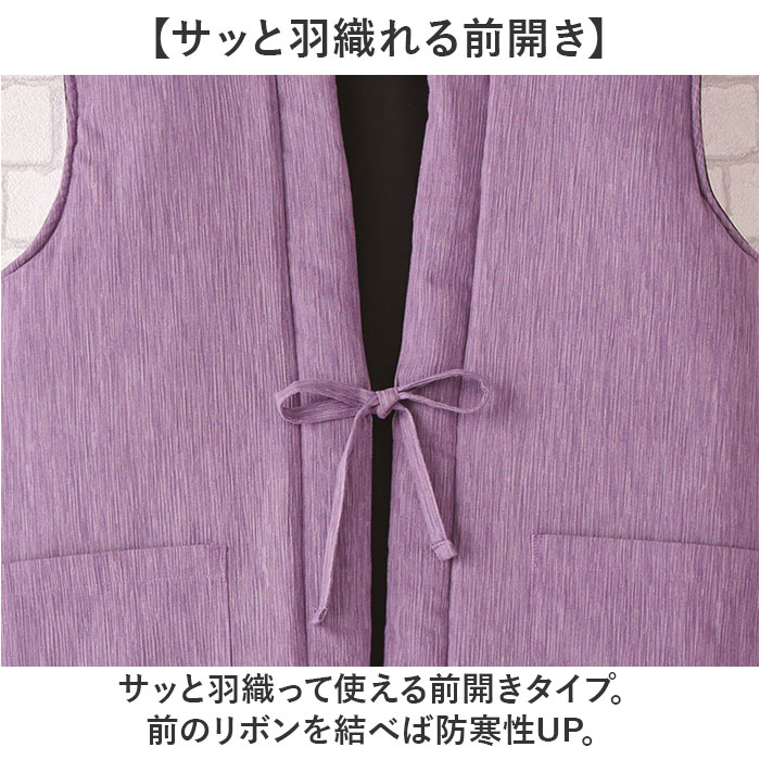 高島ちぢみ ぽかぽか中綿ベスト【パープル】【女性用M~L】