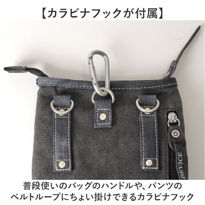 | 商品説明 | 【ミニマルに小物をIN】メンズのマストアイテムの持ち運びに!「DEVICE」からシザーケースが発売!【ミニマム派に嬉しいサイズ】ミニ財布やスマホなどお出掛けに連れて行きたいアイテムがコンパクトに収納できるサイズ【安心の天ファスナータイプ】しっかりとクローズできる天ファスナータイプ。小物がこぼれ落ちたり、外から見えないのが◎【小物を整頓して収納】内側と外側に収納ポケットを配置し、小物を整頓して収納できるのもポイント。【カラビナフックが付属】普段使いのバッグのハンドルや、パンツのベルトループにちょい掛けできるカラビナフック【スタイル自在の2WAY仕様】ショルダーベルトもついており、斜めがけや肩掛けスタイルも可能。【直接ベルトに付けることも】背面にベルトを通せるループがついており、ベルトポーチとして使うのもオススメ♪【ポケット仕様】メインルーム・・・ファスナーポケット×1フロント・・・ファスナーポケット×1、フラップポケット×1背面・・・ファスナーポケット×1 |