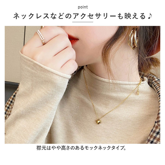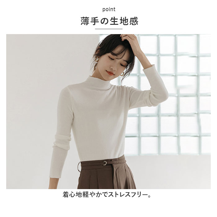 | 商品説明 | スッキリきれいに着こなせる♪長袖タイプのトップス。【薄手の生地感】着心地軽やかでストレスフリー。【ストレッチ性も!】身体のラインに心地よくフィット!【ネックレスなどのアクセサリーも映える♪】襟元はやや高さのあるモックネックタイプ。【着回し力抜群★】シンプルでどんなボトムスとも相性ばっちり◎【豊富なカラーバリエーション】ベーシックから差し色まで!色違いで揃えるのもおすすめ。 |