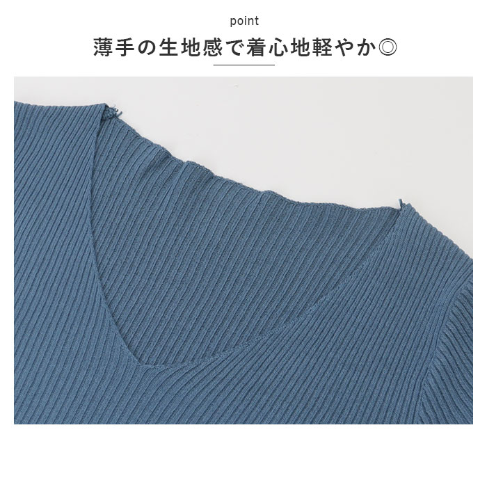 | 商品説明 | スッキリきれいに着こなせる♪半袖タイプのサマーニット。薄手の生地感で着心地軽やか◎伸縮性のあるリブ素材なので、身体のラインに心地よくフィット♪デコルテがキレイに魅えるVネックタイプ。・1枚で着るのはもちろん、お手持ちのカーディガンをサッと羽織ってレイヤードスタイルもおすすめ。シンプルなデザインで、着回し力抜群! |