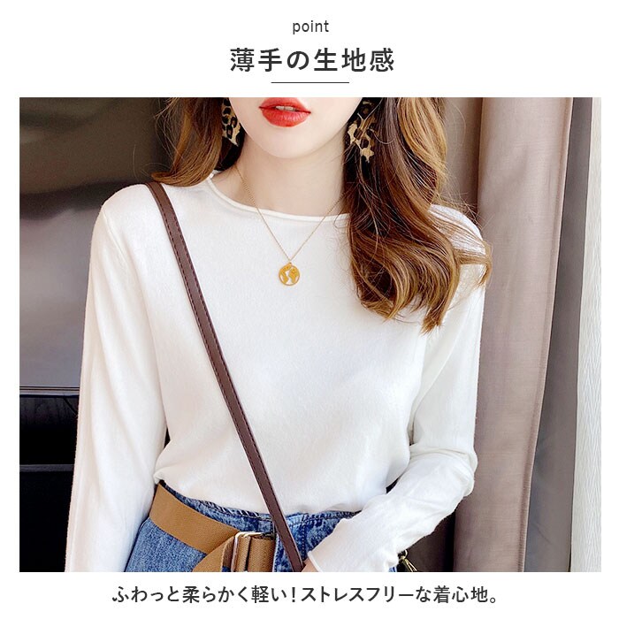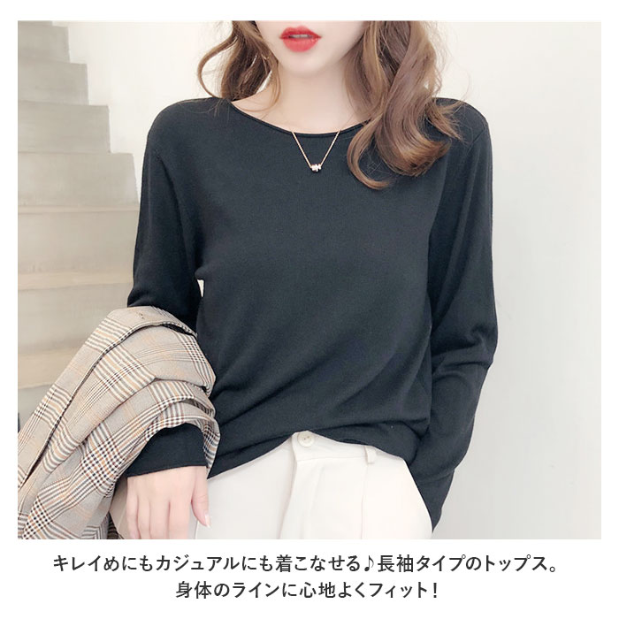 | 商品説明 | キレイめにもカジュアルにも着こなせる♪長袖タイプのトップス。【薄手の生地感】ふわっと柔らかく軽い!ストレスフリーな着心地。【ストレッチ性も!】身体のラインに心地よくフィット!【クルーネックタイプ】やや広めのクルーネックデザイン。首元が詰まりすぎず、胸元が見えにくいのもポイント。【着回し力抜群★】シンプルでどんなボトムスとも相性ばっちり◎通勤用にも大活躍。【豊富なカラーバリエーション】ベーシックから差し色まで!色違いで揃えるのもおすすめ。 |