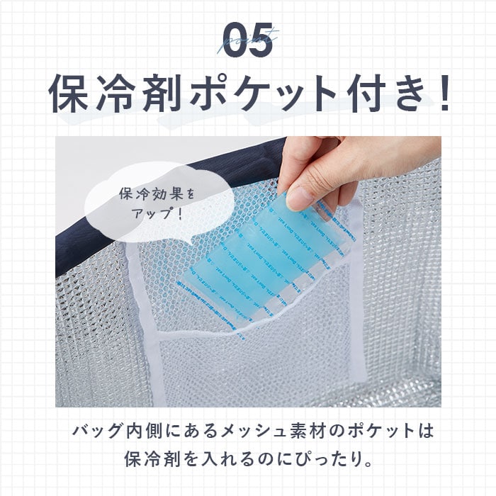| 素材 | [表地]ポリエステル [裏地]アルミ蒸着フィルム [断熱材]発泡ポリエチレン |