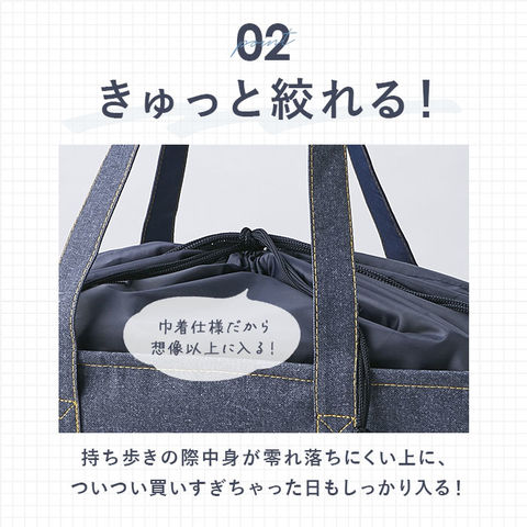 | 商品説明 | いつものお買い物で大活躍!おしゃれなデニム調デザインの「保冷・保温レジ用バッグ」が新登場。【使う人を選ばないデニム調デザイン】家族みんなで使えるデニム調の仕上がり☆コーデに馴染むおしゃれさがポイント。【キュッと絞る巾着開口】開口部はサイドの紐でキュッと絞って結ぶ巾着仕様。中身が見えたり、こぼれ落ちをガード!【たっぷり入る大容量サイズ】しっかりとマチを設け、お肉などのトレーや大きめの野菜も入るサイズ感。週末のまとめ買いや行楽シーンでも重宝。【忙しいときの味方】スーパーのお買い物カゴに、すっぽり収まる!お買い物後の袋詰めの手間が省けて時短に☆【うれしい保冷・保温機能付き】内側は保冷・保温効果のあるアルミ蒸着フィルム仕様。メッシュポケットに保冷剤を入れれば、保冷効果がアップ。【荷物が重くなっても大丈夫】ハンドルは肩掛けできるよう長めに設計。持ち運びがスムーズでストレスフリー。【小物が入るフロントポケット】フロントに配置されたポケットには、スマホやちょっとした小物をIN。【スリムに収納&持ち運び】使わない時は折りたたんで、スナップボタンで留めることが可能。収納も持ち運びもスマートに。【ポケット仕様】内側:メッシュポケット×1前面:オープンポケット×1 |