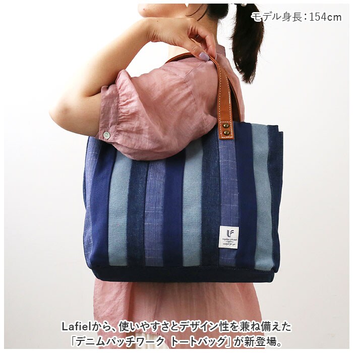 Lafiel ラフィール デニムパッチワーク トートバッグ【ネイビー】