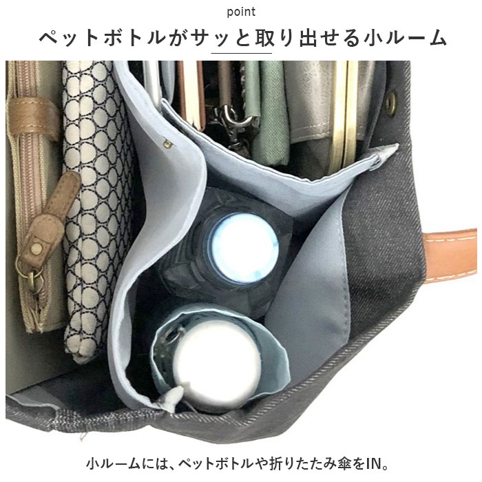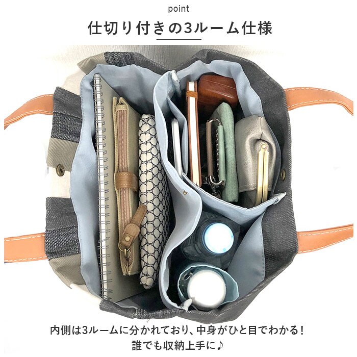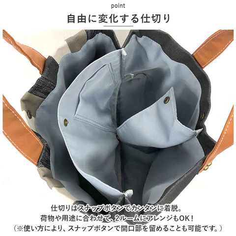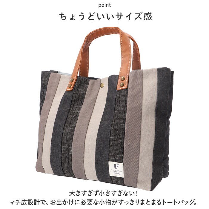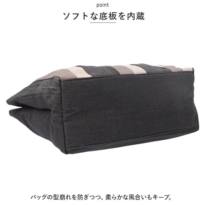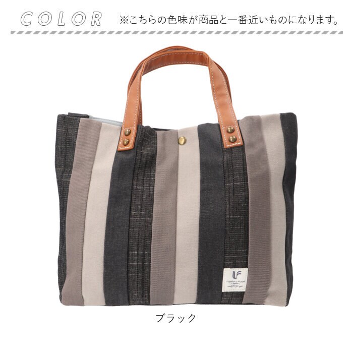 | 商品説明 | Lafielから、使いやすさとデザイン性を兼ね備えた「デニムパッチワーク トートバッグ」が新登場。【スタイリッシュなデニムパッチワークデザイン】表面はデニムを中心に質感の異なる生地をはぎ合わせ、立体的な仕上がりに。奥行きのある縦縞模様がおしゃれ♪【表裏使い分けも♪】裏面はシンプルな単色仕様。コーデや気分に合わせて使い分けもできちゃう!【ちょうどいいサイズ感】大きすぎず小さすぎない!マチ広設計で、お出かけに必要な小物がすっきりまとまるトートバッグ。【仕切り付きの3ルーム仕様】内側は3ルームに分かれており、中身がひと目でわかる!誰でも収納上手に♪【自由に変化する仕切り】仕切りはスナップボタンでカンタンに着脱。荷物や用途に合わせて、2ルームにアレンジもOK!(※使い方により、スナップボタンで開口部を留めることも可能です。)【うれしいA4サイズ対応の大ルーム】大ルームはA4サイズのファイルが横向きにすっぽり。大きなものもざっくり収まるつくり。【A5サイズ対応の中ルーム】中ルームはA5サイズのノートが縦向きに。手帳やポーチなどの収納にも便利。細々とした物を入れておけるオープンポケット付き。【ペットボトルがサッと取り出せる小ルーム】小ルームには、ペットボトルや折りたたみ傘をIN。【ソフトな底板を内蔵】バッグの型崩れを防ぎつつ、柔らかな風合いもキープ。【アクセントをプラス】合皮素材のハンドルや、フロント下部に配置されたロゴパッチがポイント。【ポケット仕様】内側:オープンポケット×1 |