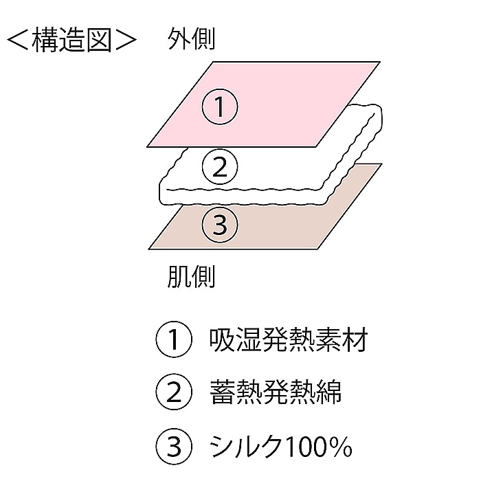 | 素材 | [表側]アクリル65%、レーヨン35% [中綿]ポリエステル70%、レーヨン30% [裏側]シルク100% |