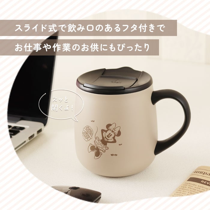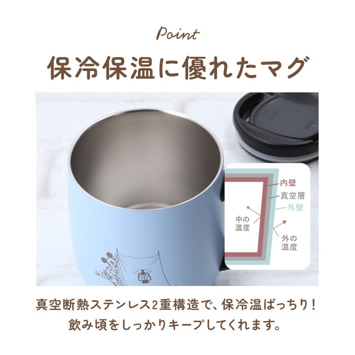| 商品説明 | 【1つ持っていれば色んなシーンで☆】ナチュラルなディズニーデザイン♪「蓋付ステンレスマグ」300mlが新登場。【保温保冷両用でオールシーズン活躍】本体内側と外側が真空断熱された、ステンレス2重構造。温冷共に飲み頃温度をキープ!【やけどや結露を防いで快適】熱々の飲み物を入れても外側が熱くならず、冷たいドリンクも結露で周りを濡らす心配が不要。【仕事や作業のお供にうれしいフタ付き】ほこりなどをカバーし、温度キープにも効果的。こぼれにくいシリコンパッキン付き。【フタをしたまま直飲みOK】開閉スムーズなスライド式の飲み口付き。フタをしたまま飲めるのが嬉しい!【自宅やオフィス、アウトドアに☆】お仕事や作業のお供に。アウトドアシーンなどでも使いやすい容量300mlサイズ。【サッと手に取れるハンドル】指を引っ掛けやすいハンドル。作業中も手に取りやすいのがポイント。【大人も愛用♪ディズニーデザイン】手触り柔らかなマットカラーに、キャラクターの絵柄をプリント。落ち着きのある印象に。【ディズニー好きな方へのギフトにも】キャラクター柄が可愛く、空間に馴染む風合いのマグ。化粧箱入りで贈り物にもおすすめ。 |