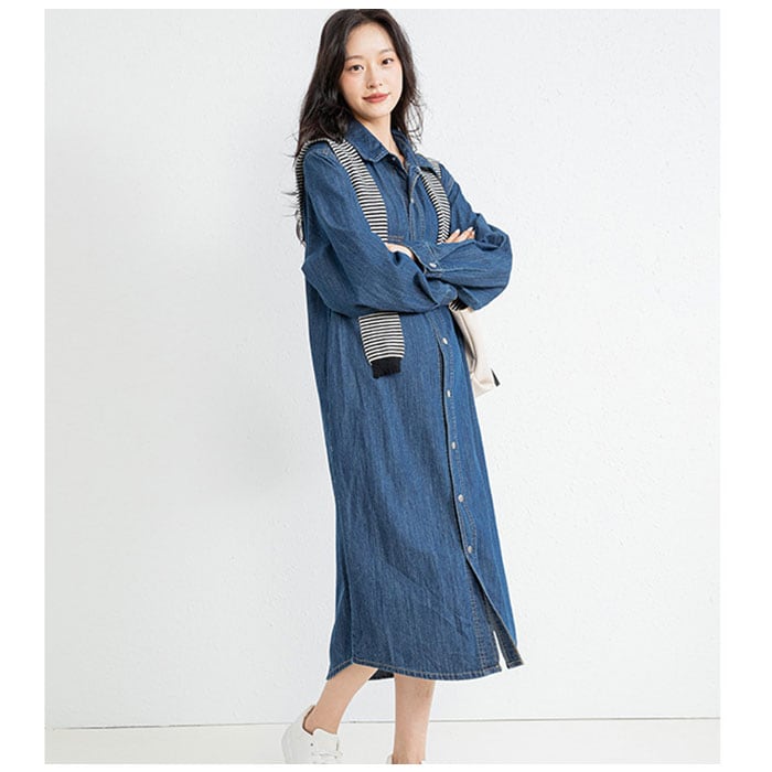 | 商品名 | デニムワンピース ロング 長袖 アウター 体型カバー dms02 |