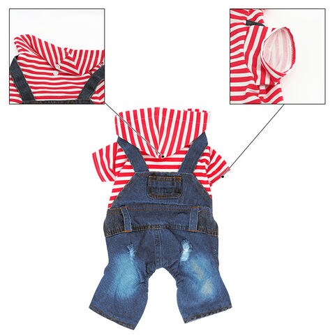 ペットデニムオーバーオール【レッド×ボーダー】【Lサイズ】