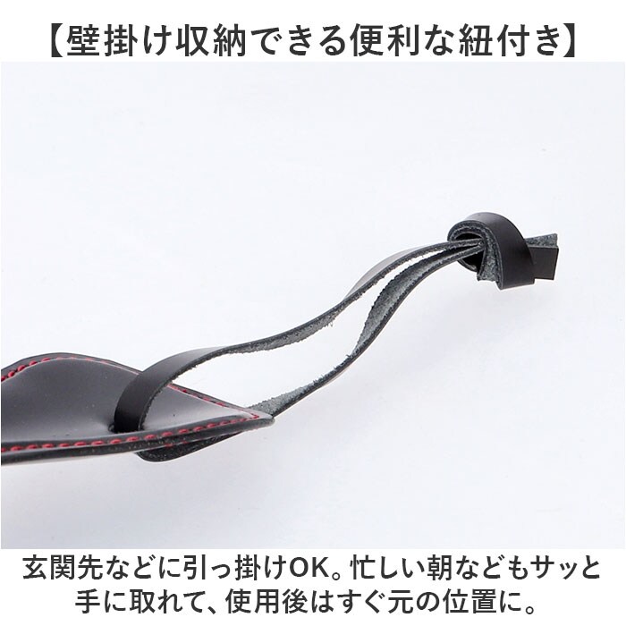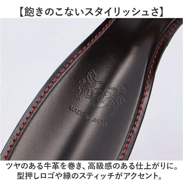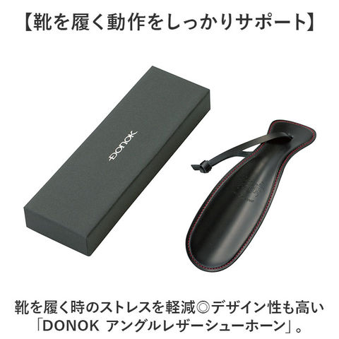 | 商品説明 | 【靴を履く動作をしっかりサポート】靴を履く時のストレスを軽減◎デザイン性も高い「DONOK アングルレザーシューホーン」。【飽きのこないスタイリッシュさ】ツヤのある牛革を巻き、高級感のある仕上がりに。型押しロゴや縁のスティッチがアクセント。【持ちやすく履きやすさもばっちり】座りながらでも屈みながらでも履きやすい!絶妙な角度に設計。【壁掛け収納できる便利な紐付き】玄関先などに引っ掛けOK。忙しい朝などもサッと手に取れて、使用後はすぐ元の位置に。【長く愛用できてギフトにも】使い込むことで愛着の湧く革アイテム。安心の日本製で、家族や大切な方への贈り物にも最適。 |