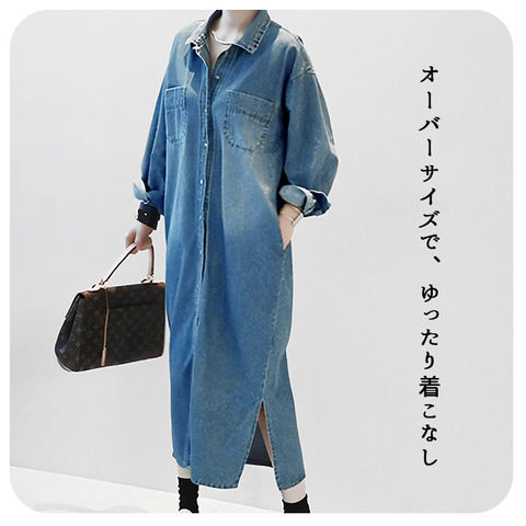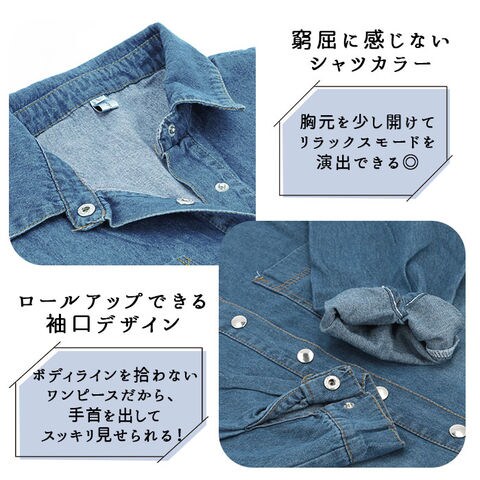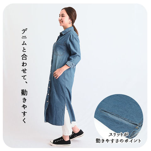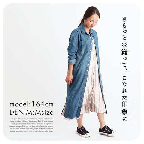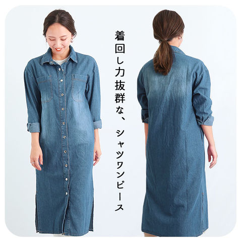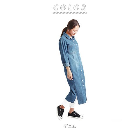 | 商品説明 | カジュアルに着こなせるデニムシャツワンピースが新登場♪落ち感のある肩のラインが、大人のリラックスムードを演出。ゆったりとしたサイジングだから、前のボタンをあけて羽織として着こなしてもOK♪インナーを変えることで3シーズン着られて、着回し力は抜群!洗いをかけたような色落ち具合のデニムだから、サラッと着られてこなれた印象に。胸元を少し開いて着ても素敵なシャツカラーと、両胸のポケットもデザインのポイント。裾の両サイドにはスリットが入っているので、ロング丈でも動きやすいのが嬉しい。 |