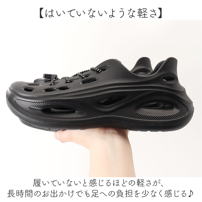 | 商品説明 | 【脱ぎ履きラクで軽やか】防水×軽量EVAのドローコード付きEVAシューズ。【スポッと履けて快適】ガバッと開いてスポッと足を入れるだけで履けるから、脱ぎ履きがとにかく楽!【ドローコードでフィット】ドローコードで甲部分を自分好みに調節でき、甲高の方にも対応できる〇【アスレジャースタイルに】スポーティなフォルムとカラー展開が、普段着にさりげなくスポーツ感を加えるおしゃれな一足。【防水性のあるEVA素材】一体成形のEVA素材は水に濡れても拭けば問題なく、雨の日や水辺でも気にせず使える◎【はいていないような軽さ】履いていないと感じるほどの軽さが、長時間のお出かけでも足への負担を少なく感じる♪ |