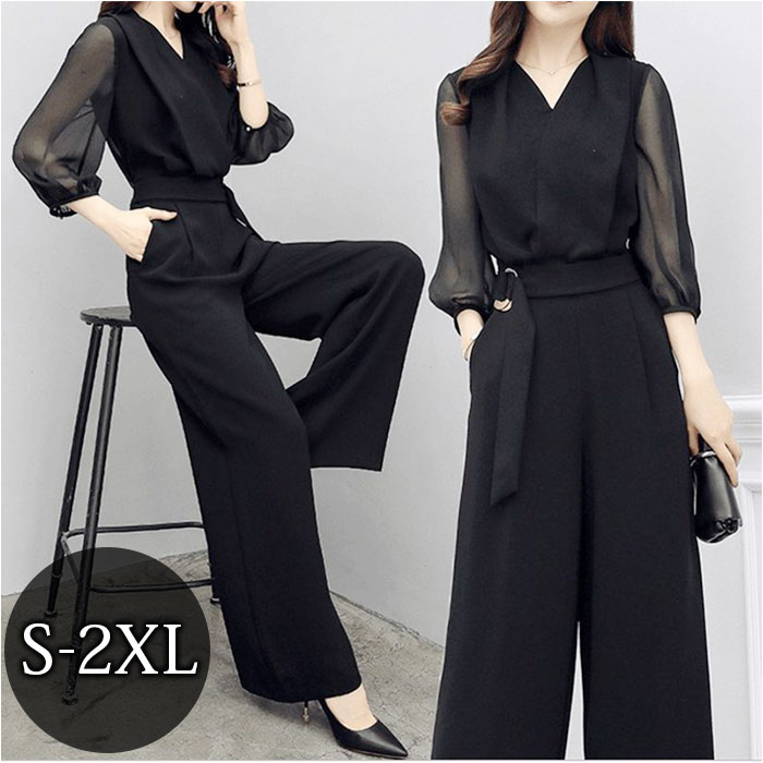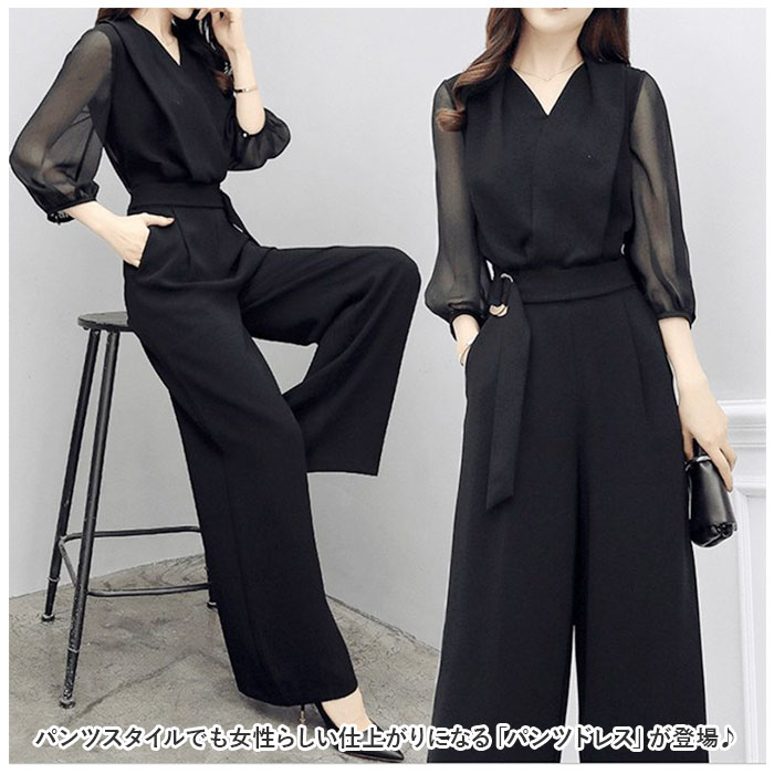 ドレス パンツドレス パーティー ロング おしゃれ dress1897【ブラック】【M】