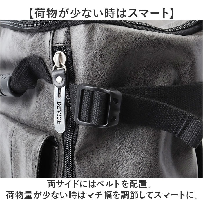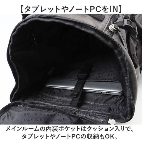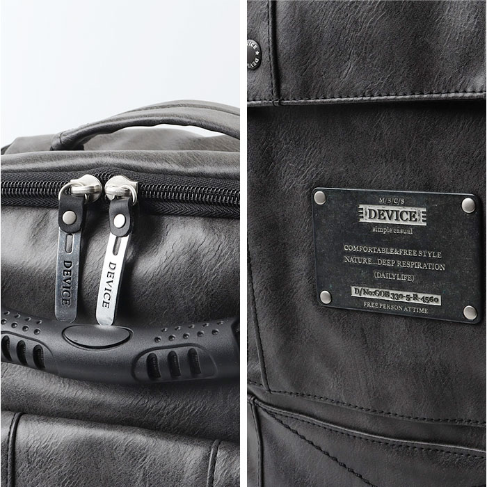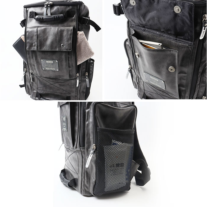 | 商品説明 | 【機能性の充実が嬉しい】ビンテージ感溢れるミリタリーリュックが「DEVICE」から登場。【嬉しい大容量】メインルームは収納約26L設計。通勤通学で荷物が多い方やちょっとした旅行に便利サイズ!【何かと便利なスクエアフォルム】ケースやバインダーなど大きな小物も引っかからず出し入れしやすいスクエア型のリュック。【タブレットやノートPCをIN】メインルームの内装ポケットはクッション入りで、タブレットやノートPCの収納もOK。【飛び出さないベルト付き】ベルトを配置し、タブレットやノートPCが移動中に飛び出さない作りなのもGOOD。【小物が見えるメッシュポケット】さらにメッシュポケットを搭載。中が透けて見えるのでパッと見つけて取り出しやすい◎【仕分けしやすいアウトポケット】フロントと両サイドにアクセスしやすいアウトポケットを配置し、小物が多くなっても整理整頓【500mlのペットボトルも】サイドのファスナーポケットは500mlのペットボトルも入るサイズ♪【荷物が少ない時はスマート】両サイドにはベルトを配置。荷物量が少ない時はマチ幅を調節してスマートに。【背面にメイン直結ファスナー】お財布やパスケースなどメインルームにしまった小物をとるのに便利な直結ファスナー付き。【アクティブに動くシーンでも】ズリ落ちを防ぐチェストベルト。ワンタッチで装着でき、位置は調整可能。【負担をかけず背負い心地快適】背中やショルダーにクッション性をプラス。どちらムレにくいメッシュ仕様。【持ち出しや積み下ろしも楽チン】上部とフロントにハンドルを取り付け、持ち出しや棚やトランクなどの積み下ろしも楽チン。【ビンテージ感溢れるレザー調】使用している合皮にはシボやムラのあるデザインでビンテージ感あり♪大人カジュアルに決まる |
