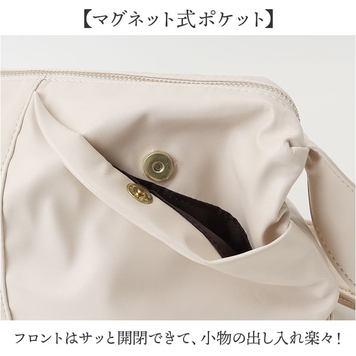 | 商品説明 | 【毎日持ちたくなる軽やかバッグ】機能的なポケットで、荷物の整理整頓もラクラク【超軽量でコンパクト】長時間使っても疲れにくい、驚きの軽さが魅力♪【幅広ストラップ】肩に優しくフィットして、快適な掛け心地を実現◎【やわらか素材】柔らかな質感と上品な光沢で、雨の日も安心〇【マグネット式ポケット】フロントはサッと開閉できて、小物の出し入れ楽々!【充実のメインルーム】オープン2つとファスナー1つで整理整頓がスムーズ。【たっぷり収納力】コンパクトでもA5ノートがすっぽり入る便利さ◎ |