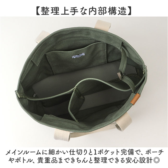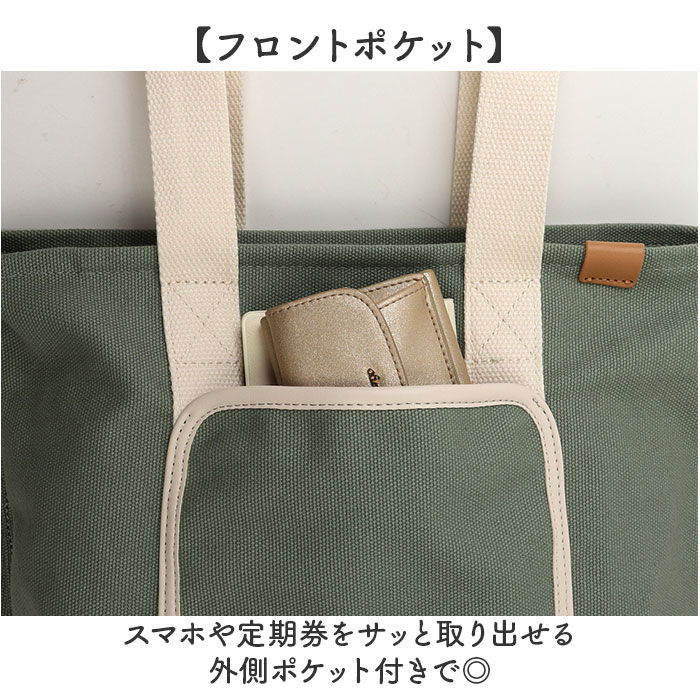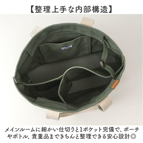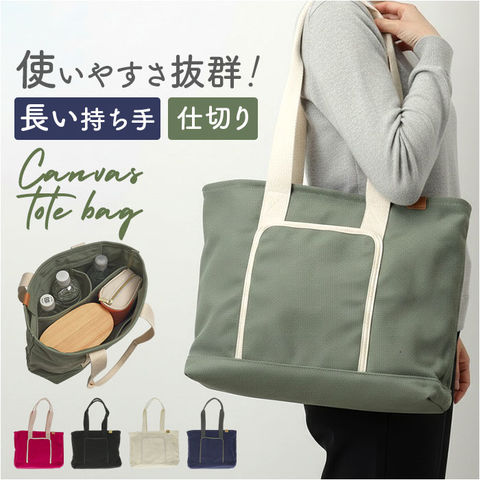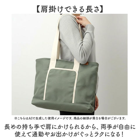 | 商品説明 | 【整理上手なトートバッグ】使いやすさ抜群の仕切り付きトートで毎日が快適♪【フロントポケット】スマホや定期券をサッと取り出せる外側ポケット付きで◎【整理上手な内部構造】メインルームに細かい仕切りと1ポケット完備で、ポーチやボトル、貴重品まできちんと整理できる安心設計◎【肩掛けできる長さ】長めの持ち手で肩にかけられるから、両手が自由に使えて通勤やお出かけがぐっとラクになる!【しっかりキャンバス素材】帆布生地特有の質感が心地よく、カジュアルで親しみやすい雰囲気を演出。【程よいマチ幅】見た目以上の収納力を確保し、お弁当箱やペットボトルもすっぽり入る頼もしさ◎【ちょうどいいサイズ】程よい大きさで、A4サイズのノートもすんなり入る実用性〇 |