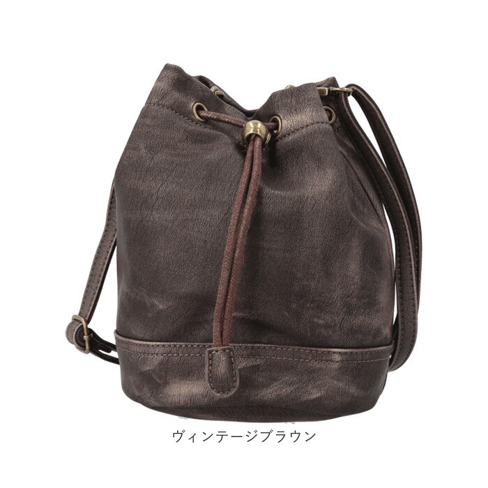 DEVICE ヴィンテージデザイン 巾着ショルダーバッグ【ヴィンテージブラウン】