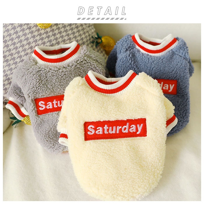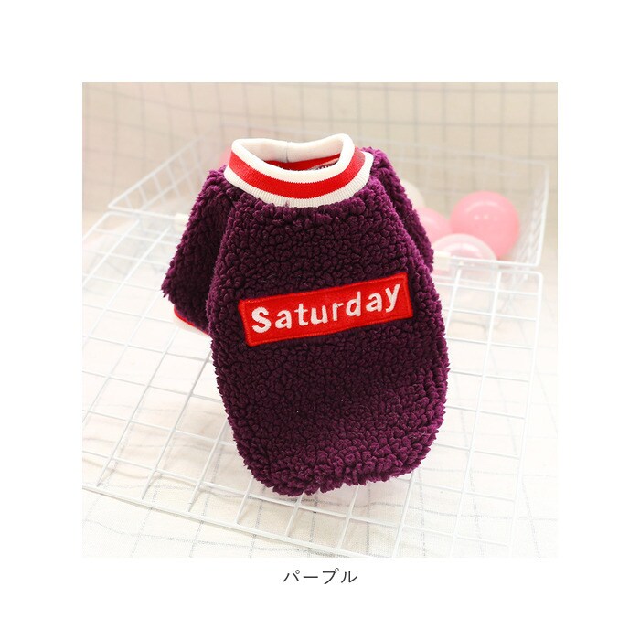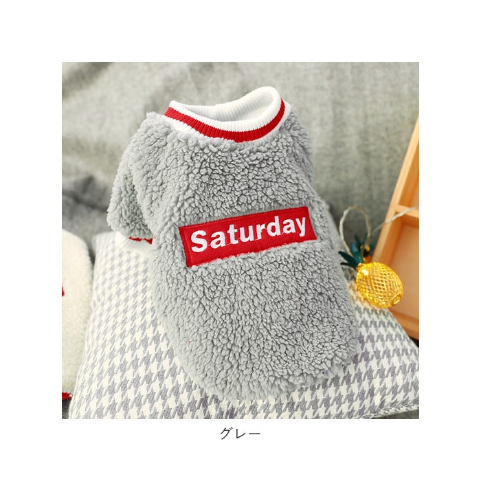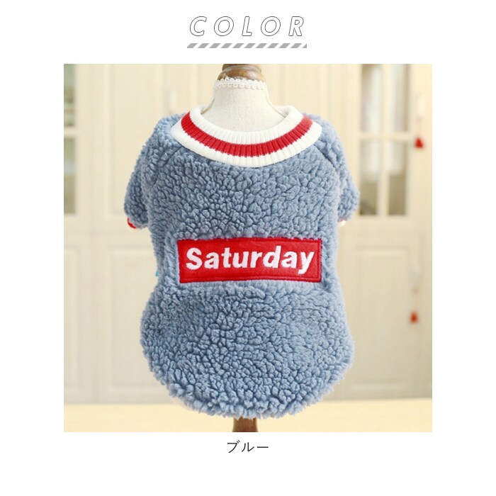 | 商品説明 | 寒い冬の日だって元気にお散歩したいワンちゃんに!ふわモコ素材で快適な「秋冬用ドッグウェア」が新登場!内側は肌ざわりのよい起毛素材に、表生地は空気を含んでふんわりあたたかい♪ボリューム感のあるモコモコ素材で仕上げたワンちゃん用ボア風トレーナー。ワンちゃんの頭と前足にすっぽり通してから、お尻にふわっと裾を被せるだけで着せ替え簡単!生地に程よく伸縮性があるので、着脱時のストレスフリー。トイレの時にお洋服を汚す心配のないお腹周りが開いたデザインで、室内用ウェアにもオススメ。小型犬から中型犬まで、ピッタリサイズが選べちゃう!XSサイズからXLサイズまで、豊富なサイズからチョイス可能。小さなサイズは、ネコちゃん用にも♪Saturdayの文字が目を惹く赤いボックスロゴと、首元や袖口のボーダーがとってもカジュアル。ワンちゃんのファッションにもとことんこだわりたい飼い主さんにオススメ! |