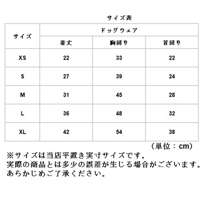 | サイズ | [ドッグウェア] ・XSサイズ ・Sサイズ ・Mサイズ ・Lサイズ ・XLサイズ ※サイズについて詳細は、サイズ表をご覧くださいませ。 |