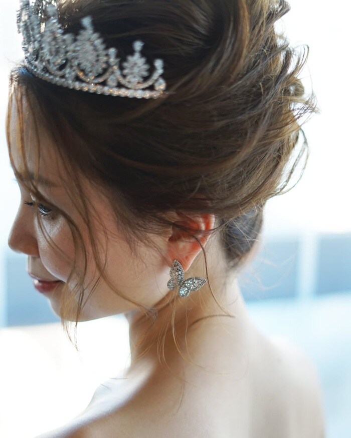 | 商品説明 | 【ブライダルアクセサリーの特徴】トレンドとして注目のバタフライモチーフ。繊細にセッティングされた、キュービックジルコニアがキラキラと輝くバタフライモチーフのピアス【このブライダルアクセサリーに合うヘアスタイル】ロングヘアの方には勿論、ボブやショートカットの方にもお似合い耳元のさりげない輝きがポイントになるピアス【このブライダルアクセサリーに合うウェディングシーン】フラワーモチーフやリーフモチーフに合わせてご利用いただき、ナチュラルウェディングに。リゾートスタイルにもぴったりなので、ブライダルが終わった後もハネムーン等にご着用可[付属品]巾着袋、取扱説明書 |