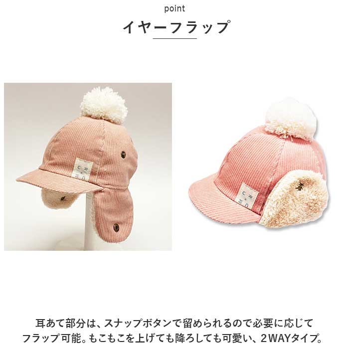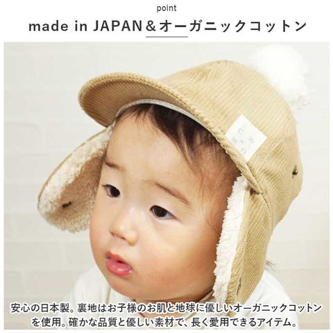 | 商品説明 | 日本製&オーガニックコットン使用。もこもこ×コーデュロイでこなれ感UP♪「耳あてCAP」が登場。【made in JAPAN&オーガニックコットン】安心の日本製。裏地はお子様のお肌と地球に優しいオーガニックコットンを使用。確かな品質と優しい素材で、長く愛用できるアイテム。【耳あて仕様】耳元まで覆うあったか耳あて仕様。寒い季節の防寒対策にぴったり◎ボア素材がふかふかあったかで、気持ちいい♪耳あて要らず!【イヤーフラップ】耳あて部分は、スナップボタンで留められるので必要に応じてフラップ可能。もこもこを上げても降ろしても可愛い、2WAYタイプ。【コーデュロイ素材】ほどよくカジュアルダウンできる、コーデュロイ素材を使用。お出かけだけでなく、普段使いや公園遊びなどのシーンにもマッチ。【ポンポンつき】大きめのポンポンつきで、ベビーやキッズならではの可愛さをプラス!キャップだけど、可愛い。男の子にも女の子にも♪【フィット感◎】後部分は、一部がゴム仕様になっており、被った時のフィット感をよりUPしてくれる。被りやすさ◎【ギフトにも】ギフトにもぴったりなおしゃれアイテム。サイズ展開もあるので、兄弟姉妹でお揃いにするのもオススメ☆ |