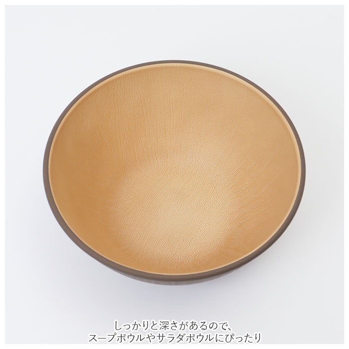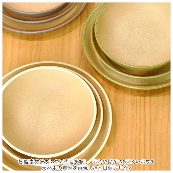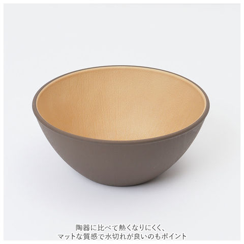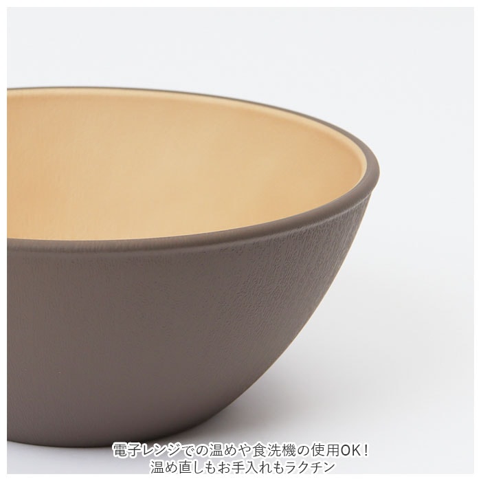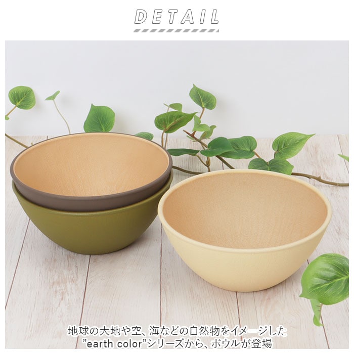| 商品説明 | 地球の大地や空、海などの自然物をイメージした”earth color”シリーズから、ボウルが登場。樹脂素材にウレタン塗装を施し、汚れや傷がつきにくいボウル。天然木の質感を再現した木目調デザイン。陶器に比べて熱くなりにくく、マットな質感で水切れが良いのもポイント。しっかりと深さがあるので、スープボウルやサラダボウルにぴったり。電子レンジでの温めや食洗機の使用OK!温め直しもお手入れもラクチン。抗菌仕様でいつも清潔。安心の日本製。スタッキングできるから場所を取らずに収納できちゃう!ナチュラルで優しい雰囲気がおしゃれ♪洋食・和食問わず合わせやすく、使い勝手ばっちり。軽くて割れにくいので、アウトドアシーンでも活躍。 |