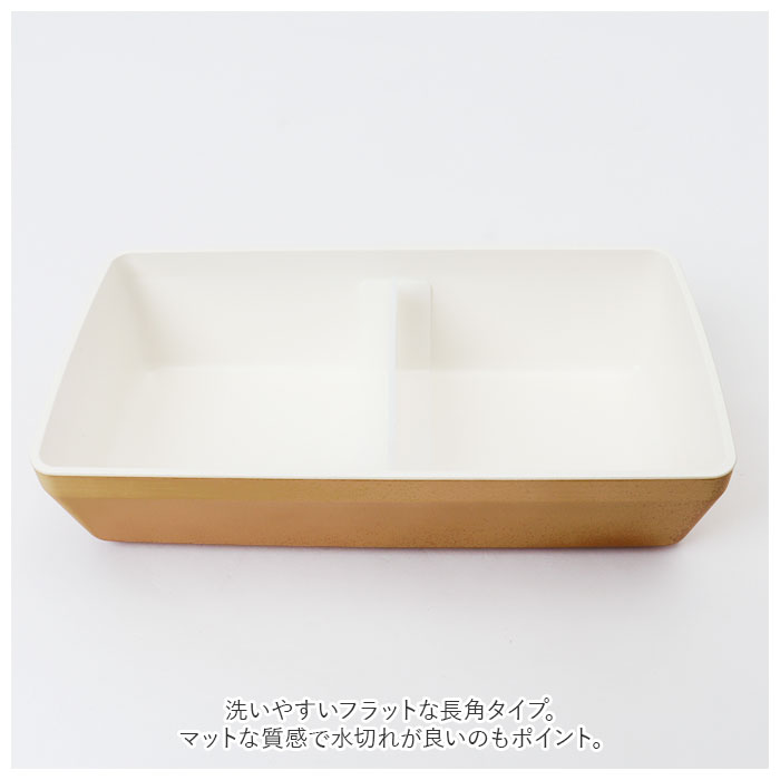 | 商品説明 | 地球の大地や空、海などの自然物をイメージした”earth color”シリーズから、長角弁当箱が登場。樹脂素材にウレタン塗装を施し、汚れや傷がつきにくい弁当箱。天然木の質感を再現した木目調デザイン。洗いやすいフラットな長角タイプ。マットな質感で水切れが良いのもポイント。ダイエット中のパパさんや、OLさんのランチにもちょうどいい容量約700ml。おかずとごはんを分けて、盛り付けがしやすい中仕切りが付属。フタには取り外しのできるシリコーンパッキンが付いているので、お弁当箱を持ち運ぶ時の汁漏れも防止。電子レンジでの温めや食洗機の使用OK!温め直しもお手入れもラクチン。抗菌仕様でいつも清潔。安心の日本製。お弁当箱をホールドして、持ち運び時に便利なランチバンド付き。ナチュラルで優しい雰囲気がおしゃれ♪オフィスや学校でのランチタイムが、より楽しみになりそう! |