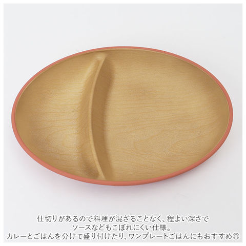 | 商品説明 | 地球の大地や空、海などの自然物をイメージした”earth color”シリーズから、オーバルプレートが登場。樹脂素材にウレタン塗装を施し、汚れや傷がつきにくいプレート。天然木の質感を再現した木目調デザイン。陶器に比べて熱くなりにくく、マットな質感で水切れが良いのもポイント。仕切りがあるので料理が混ざることなく、程よい深さでソースなどもこぼれにくい仕様。カレーとごはんを分けて盛り付けたり、ワンプレートごはんにもおすすめ◎電子レンジでの温めや食洗機の使用OK!温め直しもお手入れもラクチン。抗菌仕様でいつも清潔。安心の日本製。スタッキングできるから場所を取らずに収納できちゃう!ナチュラルで優しい雰囲気がおしゃれ♪洋食・和食問わず合わせやすく、使い勝手ばっちり。軽くて割れにくいので、アウトドアシーンでも活躍。 |
