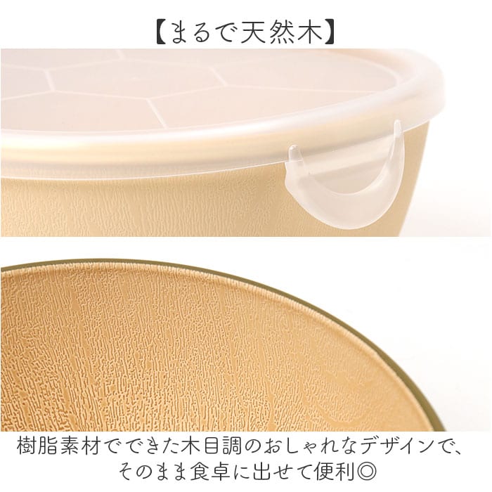 | 商品説明 | 【ラップいらずで時短】蓋のままレンジで温められる抗菌仕様の木目調ボウル。【まるで天然木】樹脂素材でできた木目調のおしゃれなデザインで、そのまま食卓に出せて便利◎【抗菌仕様で衛生的】ウレタン塗装の抗菌加工により、清潔に保てて毎日安心して使える!【食洗機でお手入れ簡単】食洗機が使えるから、後片付けの手間が省けて忙しい日も助かる♪【スタッキングで省スペース】積み重ね収納ができるから、冷蔵庫内も食器棚もすっきり整理できる♪【軽くて割れにくい樹脂製】持ちやすい形状で扱いやすく、落としても割れにくいから普段使いにも安心。【日本製品質】安心の国内生産。品質への信頼感が高く、長く愛用できるクオリティ! |