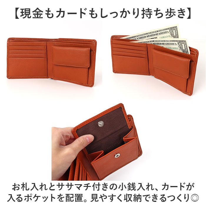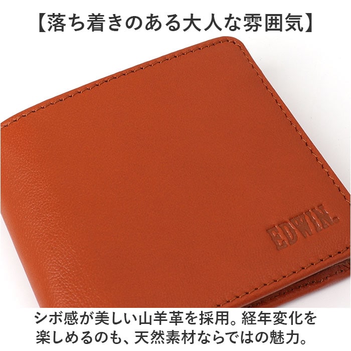 | 商品説明 | 【スマートに持ち運べて使い勝手抜群】すっきり収納できて、デイリーに活躍。「EDWIN 二つ折り財布」が新登場。【落ち着きのある大人な雰囲気】シボ感が美しい山羊革を採用。経年変化を楽しめるのも、天然素材ならではの魅力。【耐久性もあり長く愛用できる◎】滑らかな質感ながら弾力性に優れ、型崩れしにくいのもポイント。【いつでもどこでも開け閉め簡単】サッと開けるオープン式の二つ折りタイプ。お会計時も手間取らない!【現金もカードもしっかり持ち歩き】お札入れとササマチ付きの小銭入れ、カードが入るポケットを配置。見やすく収納できるつくり◎【お揃いで持てるユニセックス仕様】上質な仕上がりで、年代問わず使いやすくシーンを選ばない!色違いで揃えたり、ギフトにも☆【ポケット仕様】内側:お札入れ×2、スナップボタン式小銭入れ×1、カードポケット×3、フリーポケット×3 |