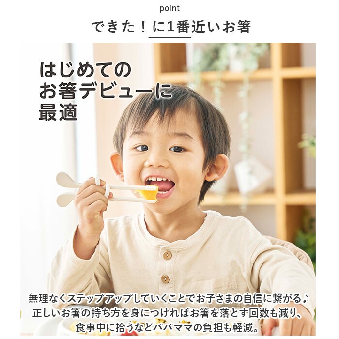 | 商品説明 | お箸のきれいな持ち方、正しい使い方を練習♪右手用のトレーニング箸「エジソンのお箸mini」が登場。【手の小さなお子さまのお箸デビューに】リングに指を入れるだけ♪小さくて軽いので、はじめてのお箸練習にぴったり。対象年齢は1.5歳頃から。【動きをサポート】指の角度を補助するリングで、正しい指の位置がわかる!連結部でお箸を固定し、交差箸の防止にも。【掴みやすい箸先】箸先は滑りにくい平らな形状。【お子さまのペースで練習できる3STEP】STEP1…それぞれのリングに指を入れ、人差し指と中指を意識して動かそう。STEP2…動きに慣れたら薬指を添えて。STEP3…リングを外して持ってみよう♪一般のお箸と交互に練習もおすすめ。【お手入れラクチン】分解して洗えるからいつも清潔!【できた!に1番近いお箸】無理なくステップアップしていくことでお子さまの自信に繋がる♪正しいお箸の持ち方を身につければお箸を落とす回数も減り、食事中に拾うなどパパママの負担も軽減。【お気に入りをチョイス】楽しくトレーニングできる★可愛らしい絵柄デザインをラインナップ。 |