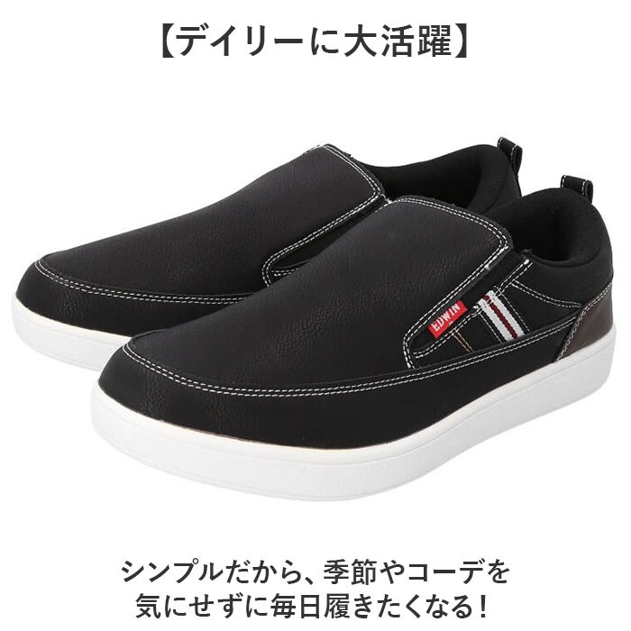 | 商品説明 | 【ふんわり軽い履き心地♪】サッと脱ぎ履きできるスリッポンタイプの「EDWIN 軽量 スニーカー」が新登場!【ストレスフリーの軽さを実現】足への負担を軽減し、たくさん歩いても疲れにくい軽量ソールを採用。【サッと履けるからラクチン!】履き口の両サイドにはゴムを配置。スリッポンみたいに、着脱がストレスフリー!【靴ひもレスで快適に】靴ひもの結び直しが不要!ほどけた…の心配いらずなのが嬉しいポイント。【足を柔らかく包んでフィット】履き口周りも厚みのあるクッション生地で仕上げ、足首やかかとを靴ズレから優しく保護。【細部までこだわったデザイン性】映えるブランドロゴと印象的なステッチがアクセント。シンプルだけど垢ぬける1足。【デイリーに大活躍】シンプルだから、季節やコーデを気にせずに毎日履きたくなる! |