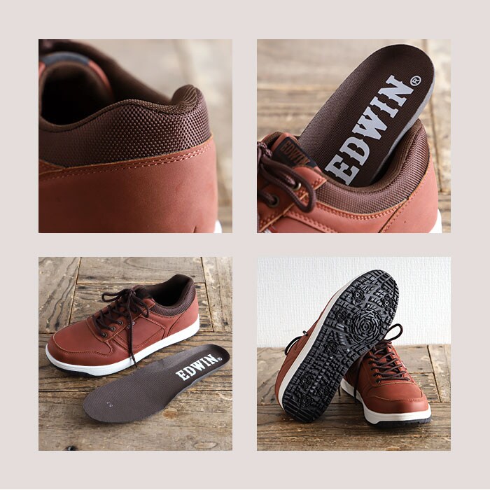 EDWIN メンズ 防水・防滑 スニーカー【BROWN】【25.5cm】