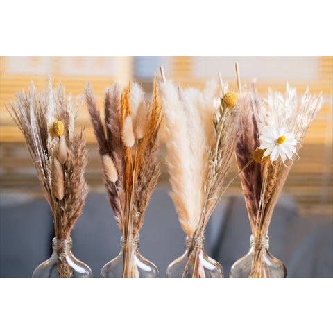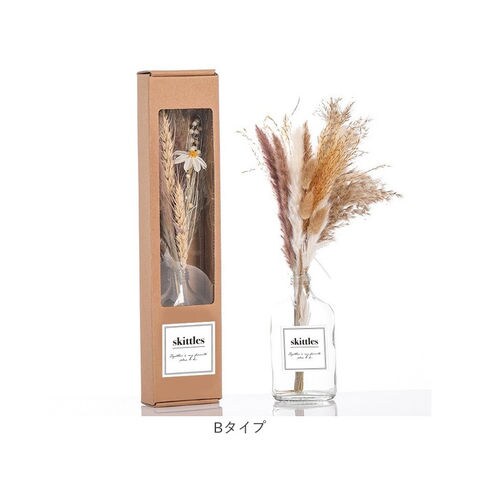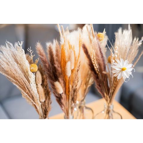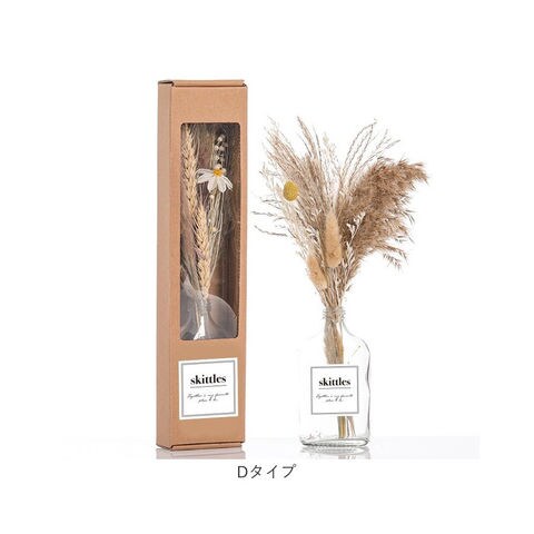 | 商品説明 | 置くだけでインテリアをグッとオシャレに!ガラスベース付きなので箱から出して、そのままお部屋に飾ることが出来ます。自然の色そのままのナチュラルなカラーがドライフラワーの魅力です。生花・造花どちらにもない天然素材独特の質感と、生花の華々しさとは対照的なくすみのあるアンティークな風合いが、生活に馴染みやすくインテリアに違和感なく溶け込み、さりげないおしゃれを楽しめます。時間が経つとともに色に変化が出てきて、その過程を楽しむ事が出来るのもドライフラワーを楽しみの一つです。 |
