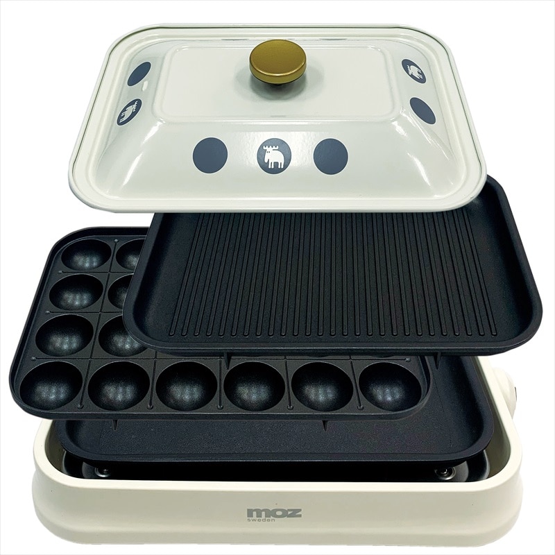 | 商品説明 | 毎日の生活に彩りをプラス。定番家電のホットプレートに、北欧スウェーデンのインテリアメーカー「FARG&FORM社」の人気スタイリッシュブランド「moz」デザインが登場。無機質になりがちな調理家電に、愛らしいエルクのデザインがアクセントとなることでオシャレな雰囲気を演出します。平面、焼肉、たこ焼きと3種類のプレートが付属しており、1台3役で様々なシチュエーションに大活躍。扱いやすい機能面と北欧デザインにより、日々の料理だけでなくプレゼントにもオススメです。「FARG&FORM社」って?1996年にスウェーデンにて設立されたデザイナー「Anders Bylin(アンダース・ビリン)」氏が率いるインテリアメーカー。「FARG&FORM」とは「色と形」を意味し、そのデザインはスタイリッシュでかわいいとヨーロッパで人気を博し、使い勝手の面も優れており、現在もHOME・KID・mozの3ブランドを中心に、多くのファンを魅了しています。「moz」って?mozとはスウェーデン語でエルク(ヘラジカ)という意味を持ち、基本的にそのままエルク(ヘラジカ)をモチーフにしたアイテムを展開しているスタイリッシュブランドです。なんとなく不器用そうで人懐こそうな、とぼけた表情のデザインが、北欧の優しさを感じるような雰囲気があります。 |