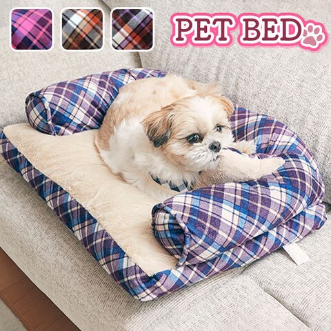 ペットベッド あご置きクッション付き【パープルxホワイト】