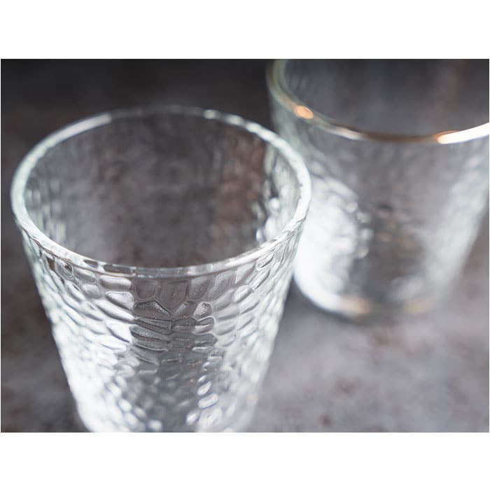 | 商品説明 | グラス表面のテクスチャがオシャレなガラスタンブラー。手触りが良く表面の凹凸が手にフィットしてくれます。普段使いはもちろん、来客用としてもオススメです。 |