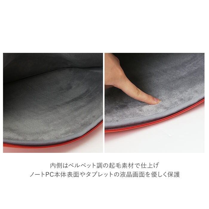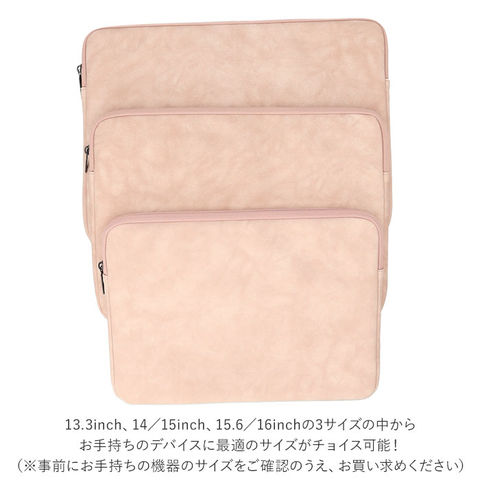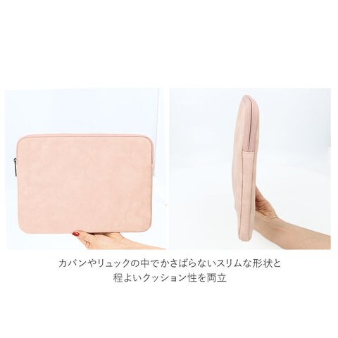 | 商品説明 | リッチなスエード調仕上げ!ふんわりクッションで安心して持ち運べる「ノートパソコン&タブレットケース」が新登場。カバンやリュックの中でかさばらないスリムな形状と、程よいクッション性を両立。MacBookやSurfaceなど、薄型ノートPCの持ち運びに便利なポータブルケース。開口部のファスナーが大きく開き、ノートPCやタブレットが必要な時にサッと取り出せる。内側はベルベット調の起毛素材で仕上げ、ノートPC本体表面やタブレットの液晶画面を優しく保護。デバイスの下に敷けばPCマットに。マウスの下に置けば、マウスパッドとしても使用可能。13.3inch、14/15inch、15.6/16inchの3サイズの中から、お手持ちのデバイスに最適のサイズがチョイス可能!(※事前にお手持ちの機器のサイズをご確認のうえ、お買い求めください。)華やかなパステルカラーと高級感のあるスエード調素材で、お洒落に持ち歩ける♪ |