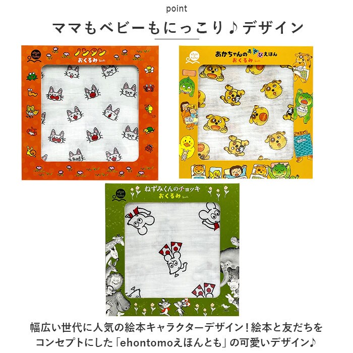 | 商品説明 | 世代を超えて長年愛される絵本キャラクターとコラボしたベビー&キッズ向け商品☆「ehontomo おくるみ」が登場!【ママもベビーもにっこり♪デザイン】幅広い世代に人気の絵本キャラクターデザイン!絵本と友だちをコンセプトにした「ehontomoえほんとも」の可愛いデザイン♪【使い方いろいろ♪大活躍アイテム】おくるみ、お昼寝のお布団、ベビーカーの日除け、おむつ替えシート、授乳ケープやタオルなど使い方いろいろ◎オールシーズン大活躍!【安心のコットン100%】綿100%素材の2枚重ねガーゼを使用しているので、新生児の赤ちゃんを優しく包み込んでくれる。さらにデリケートな赤ちゃんのお肌にも優しく安心◎【いつでも清潔】速乾性抜群のガーゼなのでお洗濯しやすい!静電気を起こしにくく細かいゴミを寄せ付けない素材感。毛羽立ちしにくいのも嬉しいポイント♪【ギフトにも】何枚持っていても重宝するおくるみなので、出産祝いの定番アイテム☆パケ買いしたくなる可愛いBOX入りなのでギフトにもオススメ! |